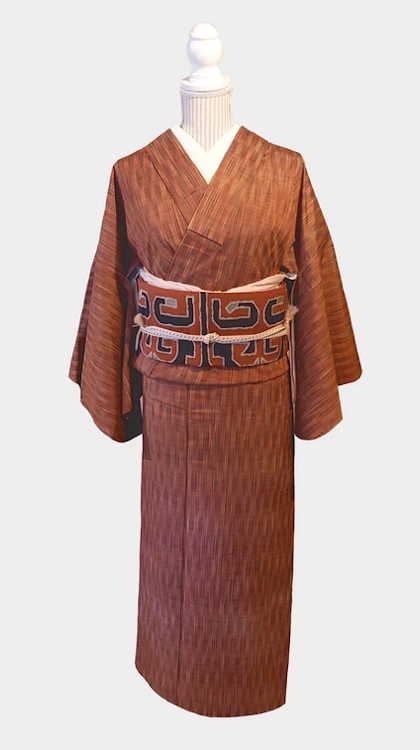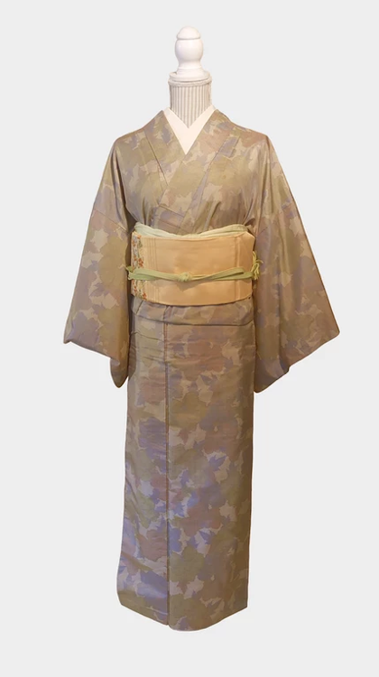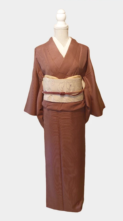 小さな十字模様が入っていて意外に華やかに見えるお着物です。